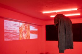 be nice is a sound installation and sculptural work. A suspended hoodie, meshed from the inside to suggest a body, emanating sound from within.